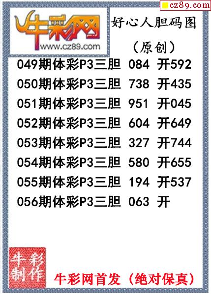好心人送胆056期体彩p3图谜(原创)